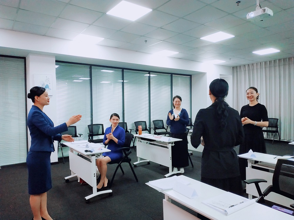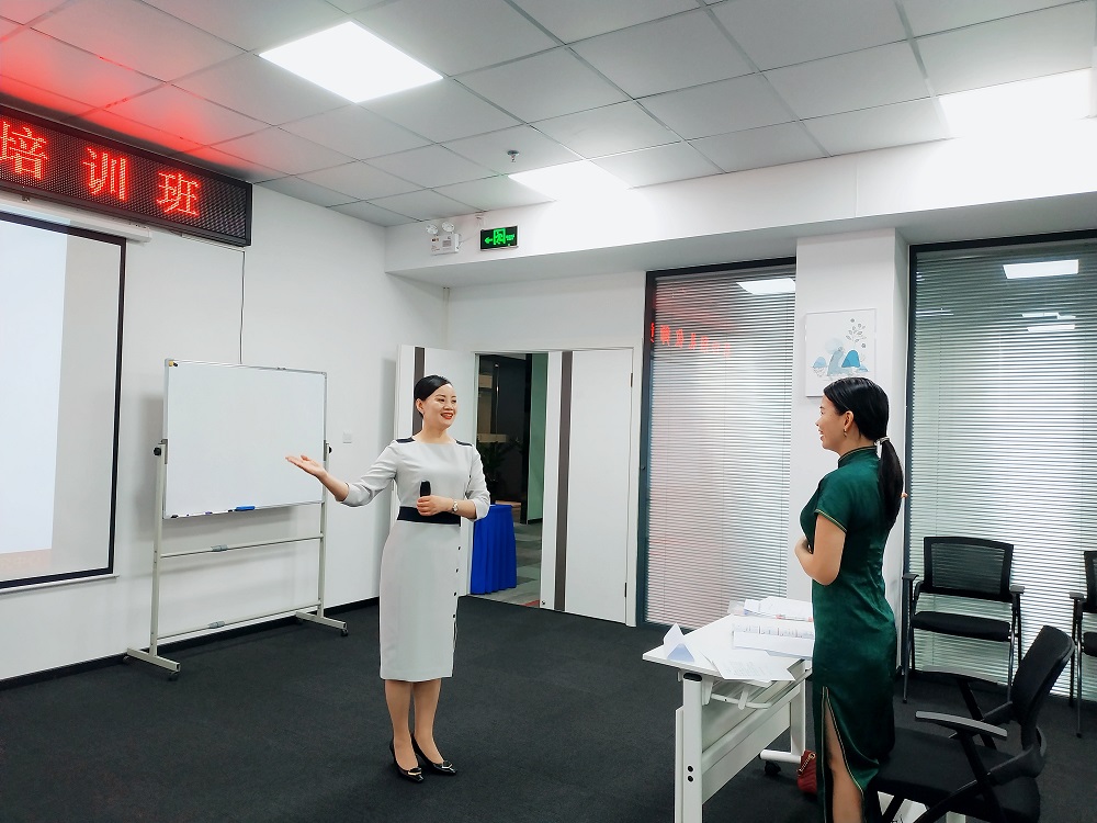 宣誓結(jié)束后,時(shí)淑妍老師給大家講授了《禮儀應(yīng)用基礎(chǔ)梳理》課程。時(shí)老師為學(xué)員們講授了禮儀培訓(xùn)師的形象塑造,并系統(tǒng)梳理了四大類的禮儀知識。課程學(xué)習(xí)中,為了促進(jìn)學(xué)員相互認(rèn)識,鍛煉學(xué)員與人溝通的能力,和展現(xiàn)自我的勇氣,時(shí)淑妍老師運(yùn)用破冰互動(dòng)讓大家在交流中加深對彼此的了解。