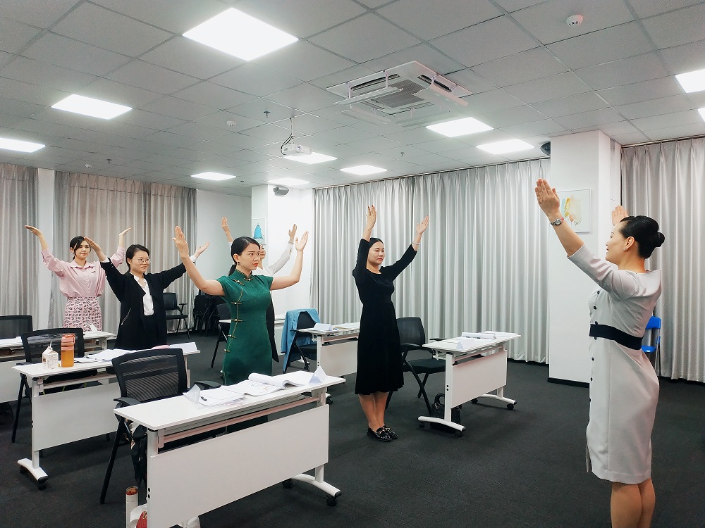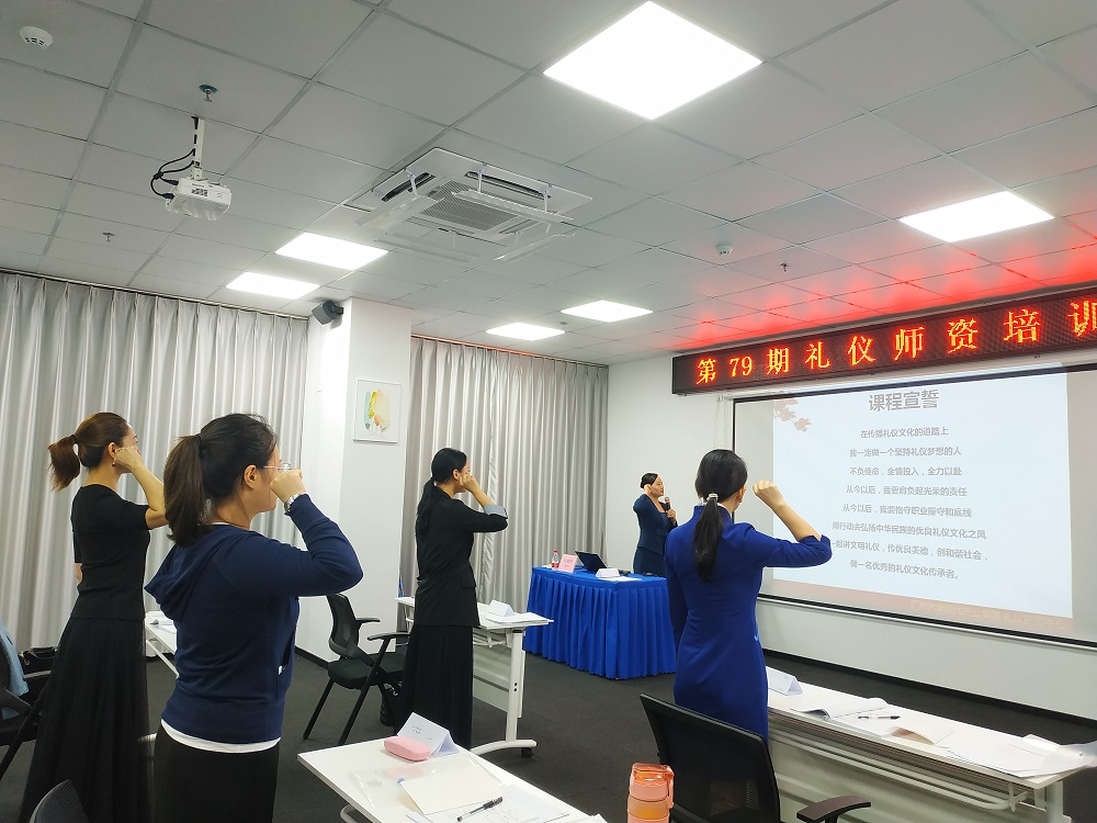上午學(xué)習(xí)時(shí)間段,首先,時(shí)淑妍老師幫助全體學(xué)員了解禮儀培訓(xùn)師行業(yè)、職業(yè)發(fā)展方向與前景;接著,時(shí)淑妍老師帶領(lǐng)全體學(xué)員進(jìn)行莊嚴(yán)的禮儀培訓(xùn)師宣誓,作為禮儀培訓(xùn)師,堅(jiān)持為弘揚(yáng)發(fā)展、傳承禮儀文化,不斷努力。我們謹(jǐn)記使命,肩負(fù)責(zé)任,砥礪前行。