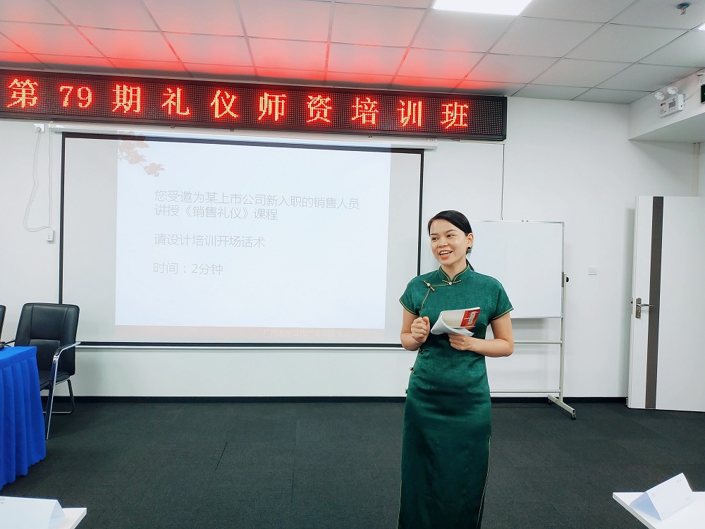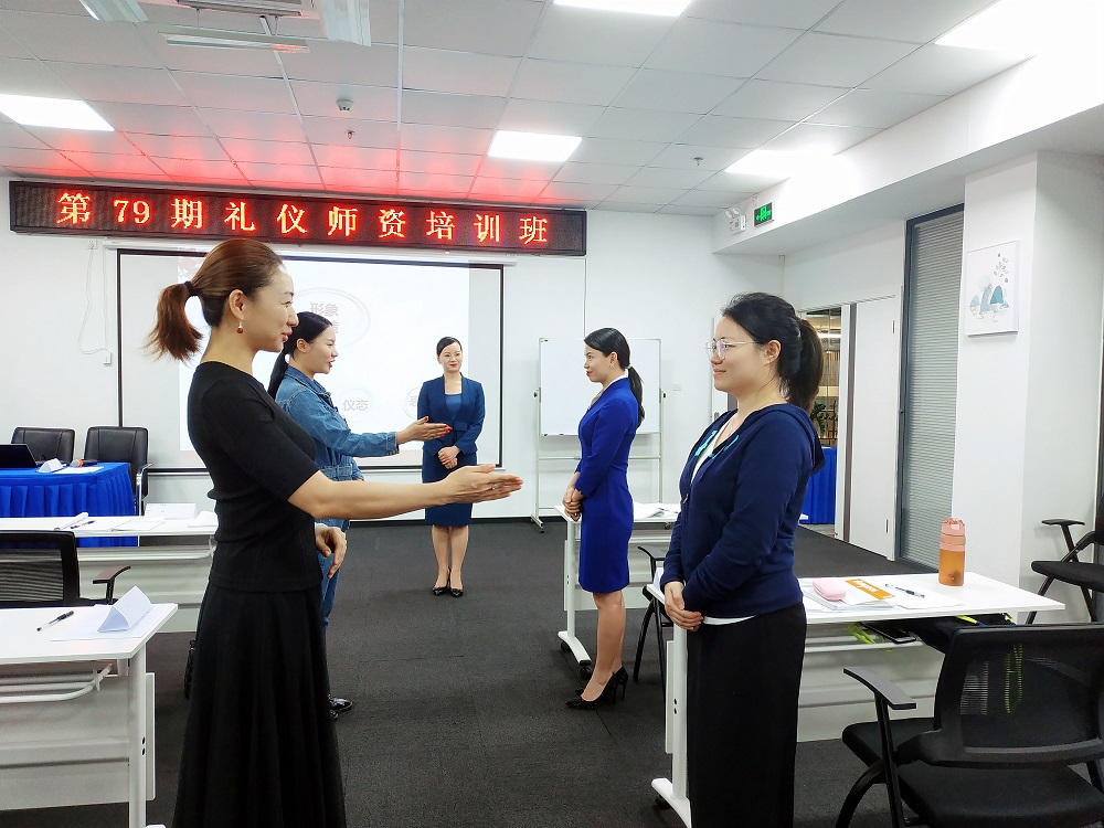 時(shí)淑妍老師為學(xué)員們講授了作為禮儀培訓(xùn)師職業(yè)風(fēng)采的禮儀細(xì)節(jié),并讓學(xué)員們逐一練習(xí),通過指導(dǎo)力求讓每位學(xué)員都能盡快掌握禮儀培訓(xùn)師的現(xiàn)場授課的風(fēng)采及技巧。