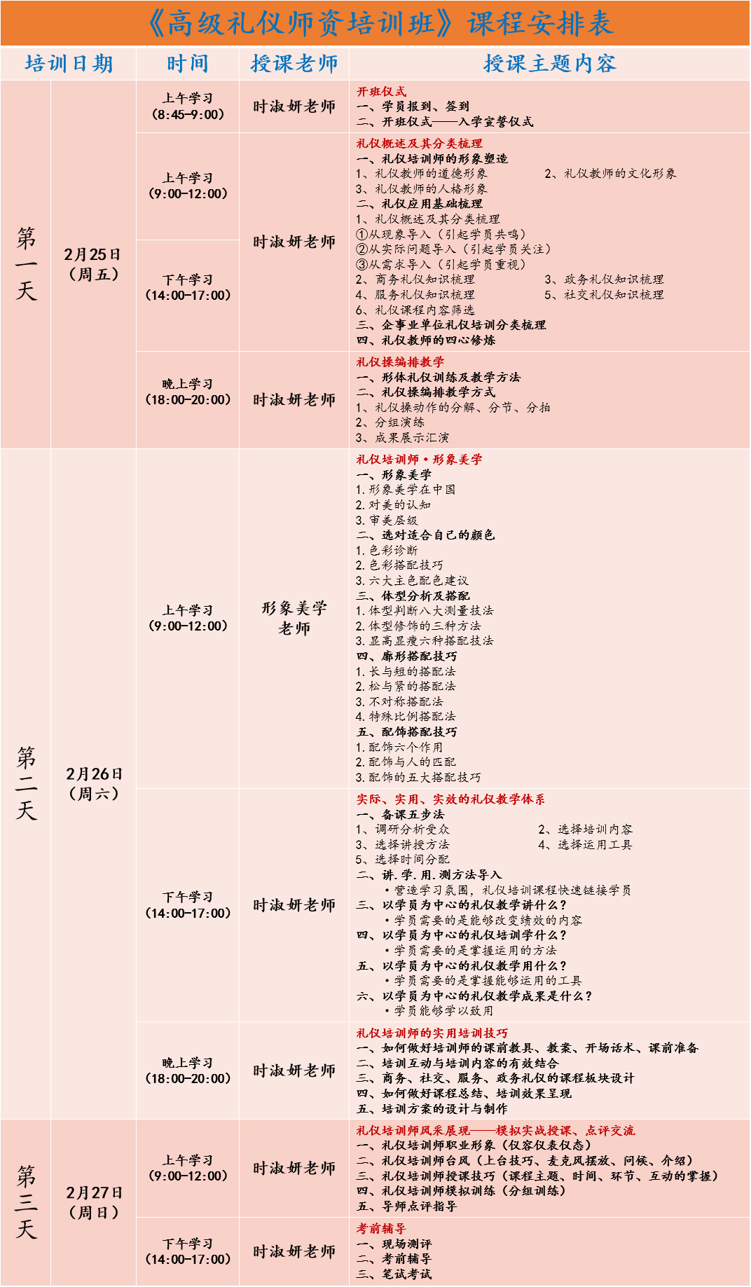 【每天上課時(shí)間安排如下】:2月25日(周五)開班儀式:8:45—9:00
