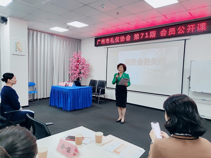 廣州市禮儀協(xié)會副會長陳靜芬女士為本期會員公開課作開課致辭。