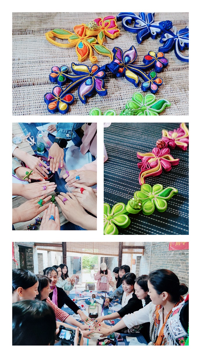 經(jīng)過(guò)兩個(gè)多小時(shí)的精心制作,一個(gè)個(gè)精致小巧的戒指盤(pán)扣便呈現(xiàn)在眼前。大家看著自己親手制作的盤(pán)扣,你一言我一語(yǔ),臉上洋溢著幸福的笑容,雖然大家都是零基礎(chǔ)制作,但是看著作品一點(diǎn)點(diǎn)展現(xiàn)的過(guò)程,享受著親自動(dòng)手勞作的樂(lè)趣,更加讓人感動(dòng),真是一針一線(xiàn),皆是學(xué)問(wèn)??!