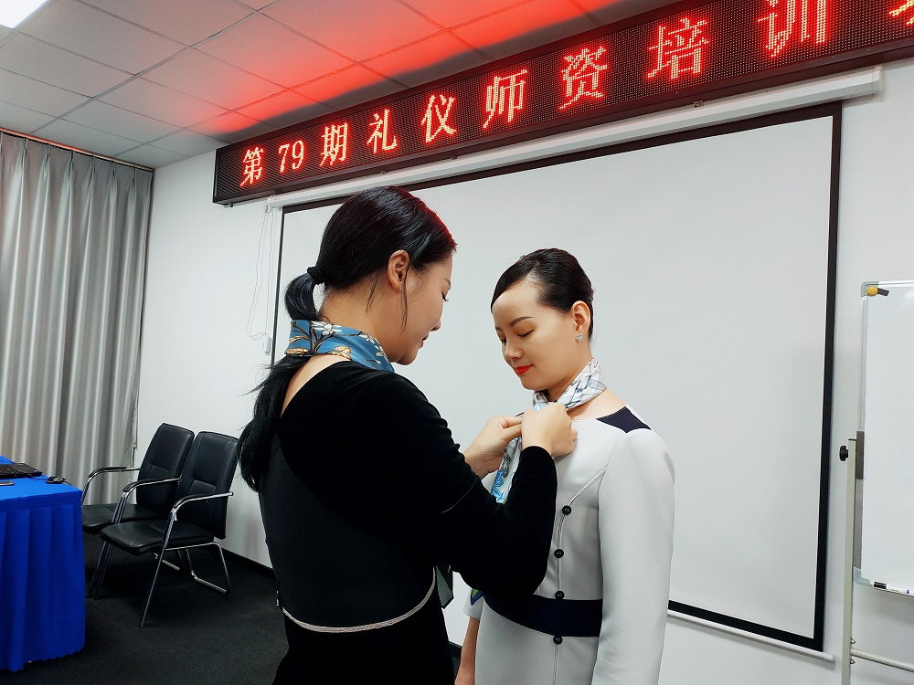劉老師為大家講解了服裝色彩搭配等方面的理論知識,并教授學(xué)員如何根據(jù)自己的膚色來選擇適合自己的服裝、如何根據(jù)體形進(jìn)行搭配服裝、如何靈活運(yùn)用絲巾搭配來打造職業(yè)禮儀培訓(xùn)師的專業(yè)形象。