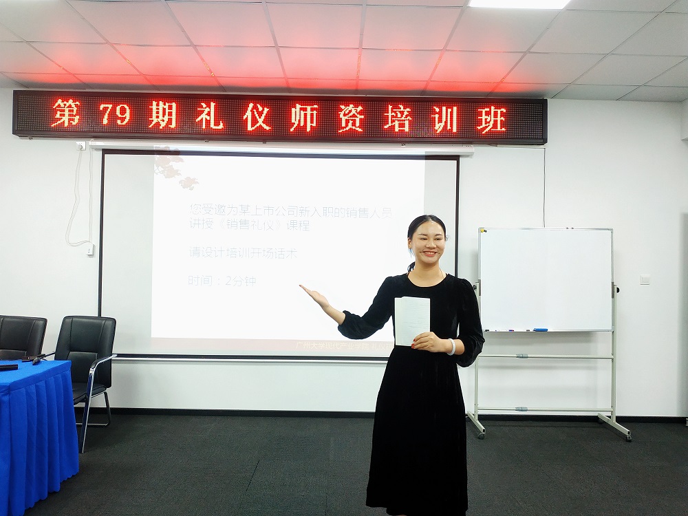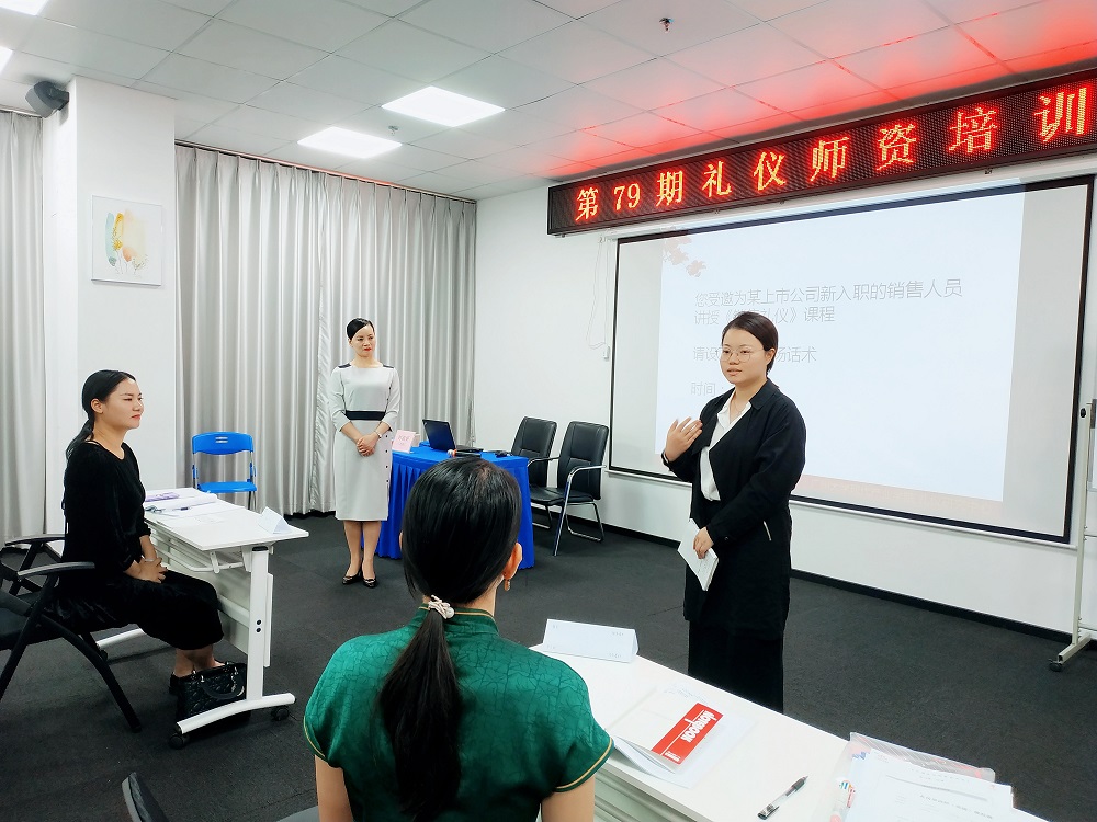 時(shí)淑妍老師為學(xué)員們講授了作為禮儀培訓(xùn)師職業(yè)風(fēng)采的禮儀細(xì)節(jié),并讓學(xué)員們逐一練習(xí),通過指導(dǎo)力求讓每位學(xué)員都能盡快掌握禮儀培訓(xùn)師的現(xiàn)場授課的風(fēng)采及技巧。