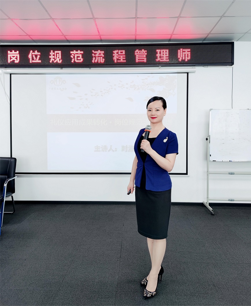 第一天課程,由廣州市禮儀協(xié)會(huì)會(huì)長、資深禮儀培訓(xùn)師,高級(jí)禮儀培訓(xùn)師,禮儀成果轉(zhuǎn)化體系研發(fā)者時(shí)淑妍老師,為學(xué)員們帶來了《崗位規(guī)范流程管理》課程。