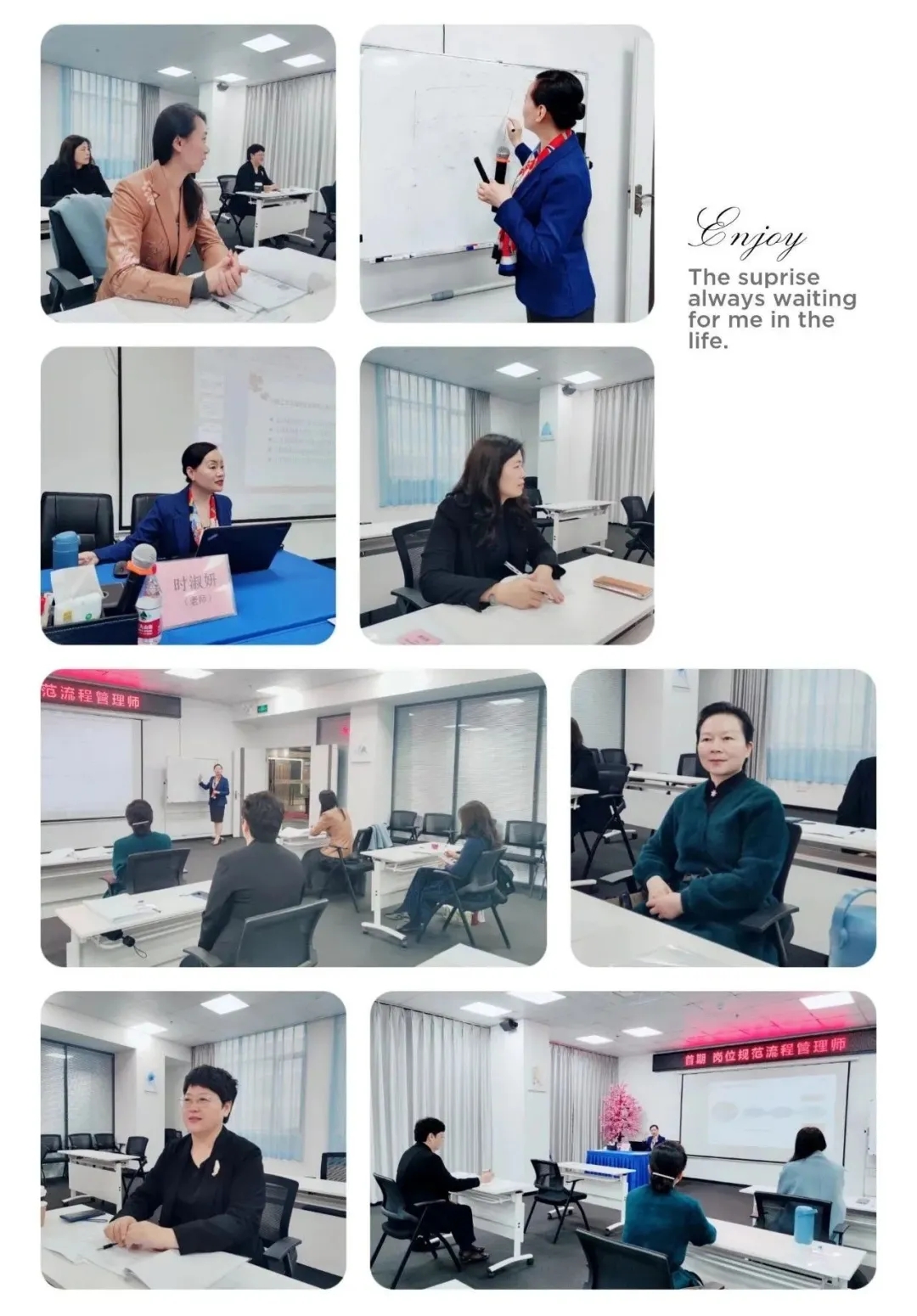 接著,時(shí)老師為大家講解了如何根據(jù)培訓(xùn)單位的實(shí)際情況分析崗位任務(wù)、崗位規(guī)范管理制定方法及注意事項(xiàng)、崗位規(guī)范管理如何實(shí)施和優(yōu)化等內(nèi)容,提升學(xué)員們?yōu)榕嘤?xùn)單位定制崗位規(guī)范流程管理培訓(xùn)方案的能力,從而進(jìn)一步有效幫助培訓(xùn)單位實(shí)現(xiàn)員工形象職業(yè)化,崗位流程規(guī)范化、標(biāo)準(zhǔn)化。